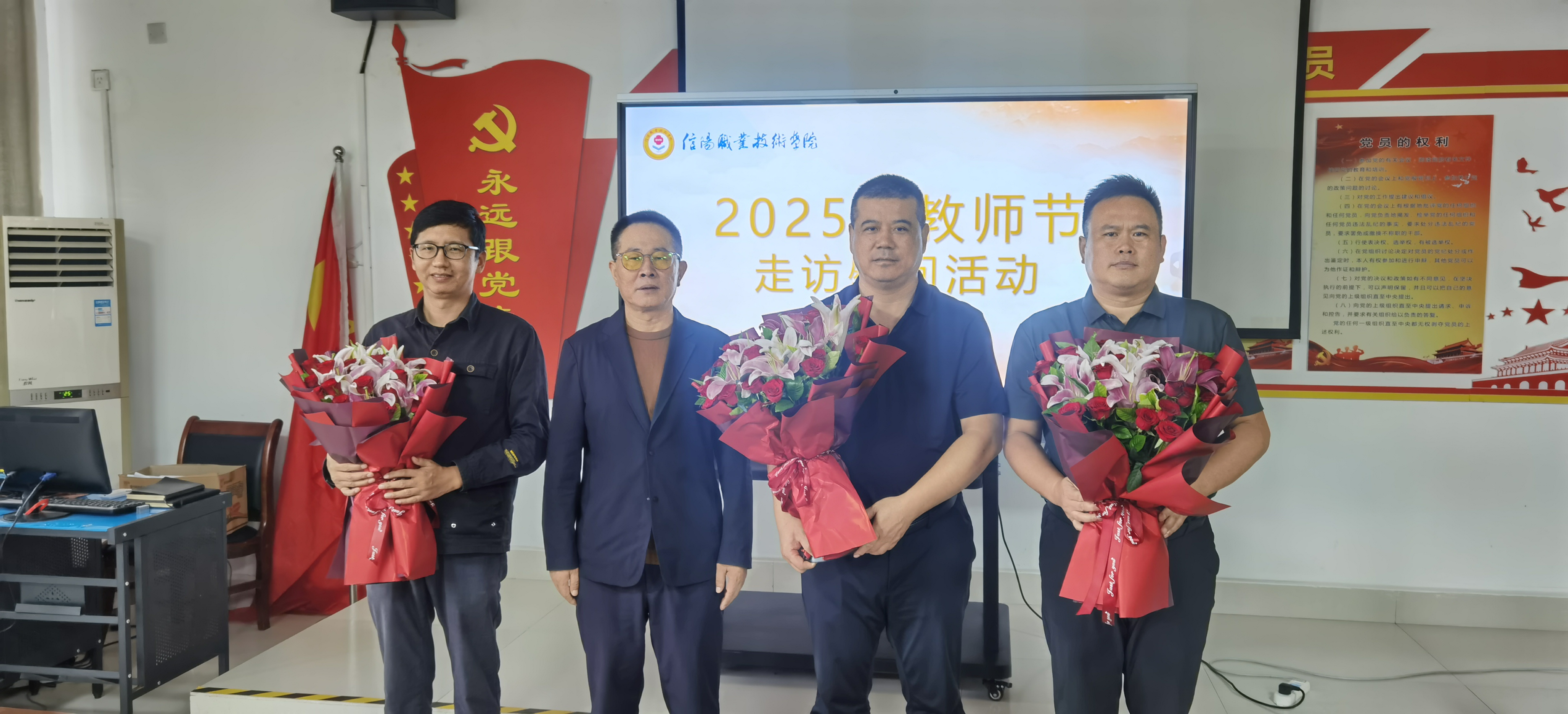 在第41个教师节来临之际,9月10日,公司党委委员、副董事长周有国到公司走访慰问经理吕争教授、余阿东教授、冯金地博士及教师代表,并通过他们向全体教职工致以节日的祝福和诚挚的问候。