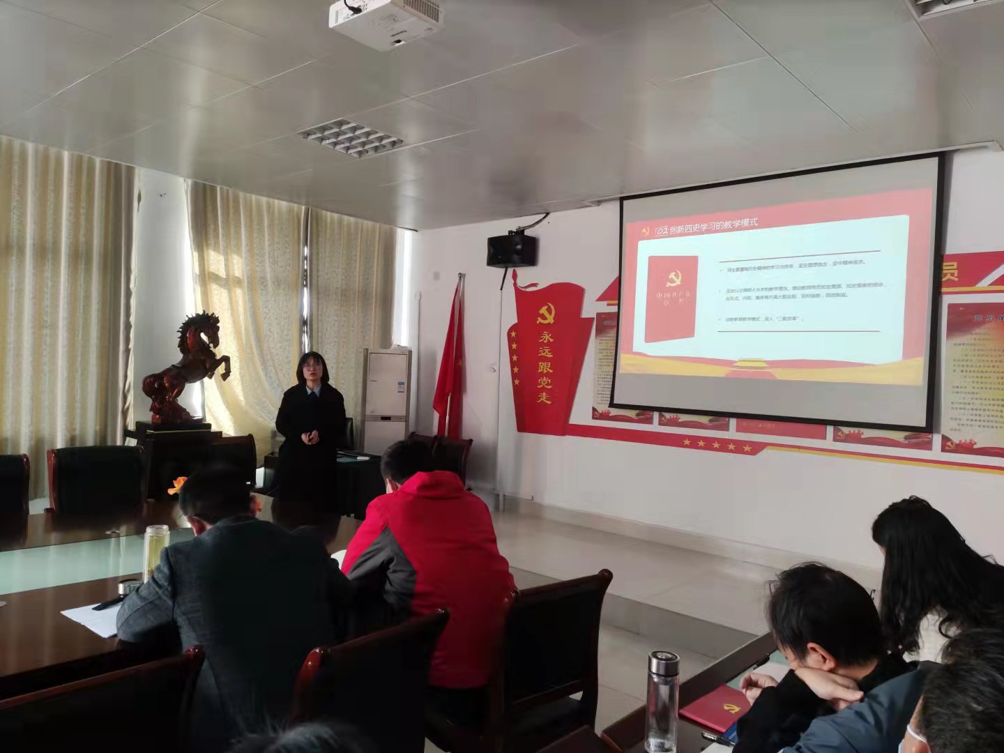 王平俊从“四史学习的内涵意义”、“创新四史学习的教学模式”、“搭建四史学习的实施桥梁”、“探索新时代高校教师使命担当的实施路径”和“明确新时代高校教师核心素养发展方向”五个方面详细进行了剖析。同时,王经理指出:作为党员,要积极认真学习“四史”,要重视历史精神的学习与传承,坚定理想信念,坚守精神追求。坚定立德树人和以人为本的教学理念。同时,创新公司产品改革模式,深入“三教改革”。培养德智体美劳全面发展的社会主义建设者和接班人,为中华民族的伟大复兴而不懈奋斗!