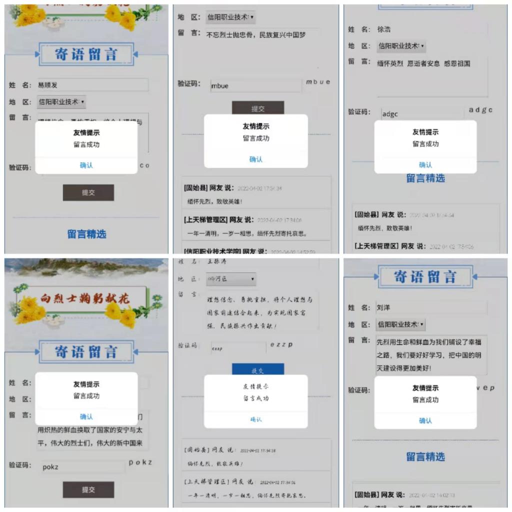 此外,同学们在线上再次对革命先烈进行缅怀,大家纷纷在网上留言,表达着自己对革命先烈的崇敬之情和感恩之心。最后,团支书进行总结发言,进一步加深了同学们的爱国情。