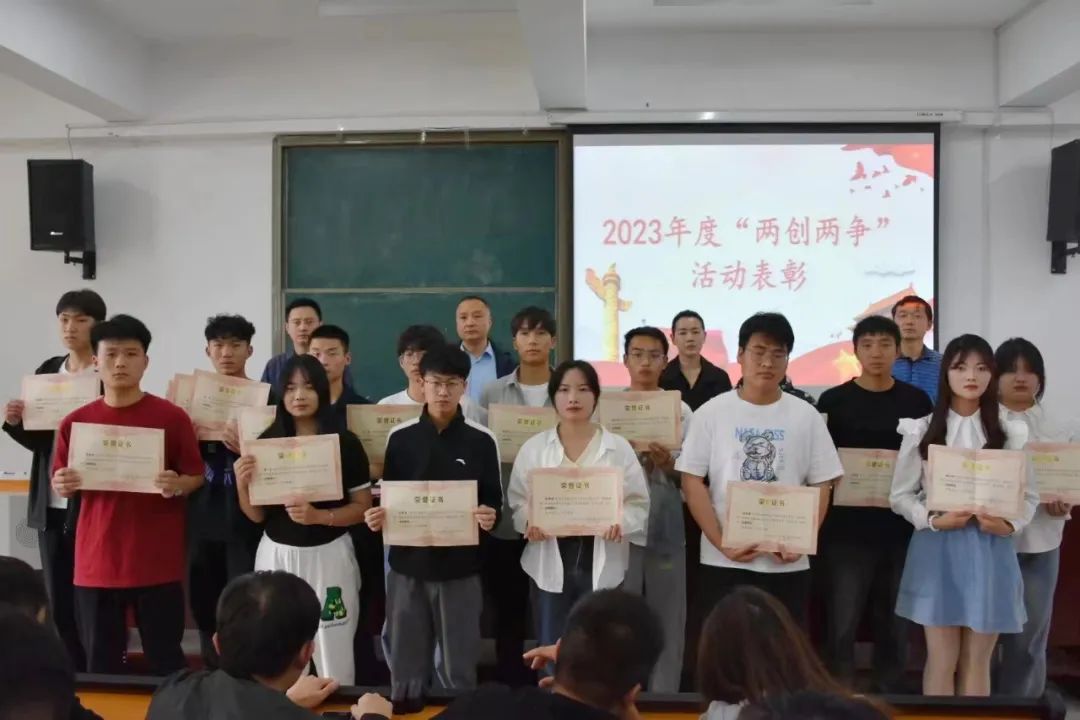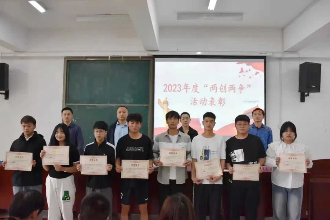 翟志方宣读获得“两创两争”表彰的文明班集体、文明员工、文明宿舍获奖名单。