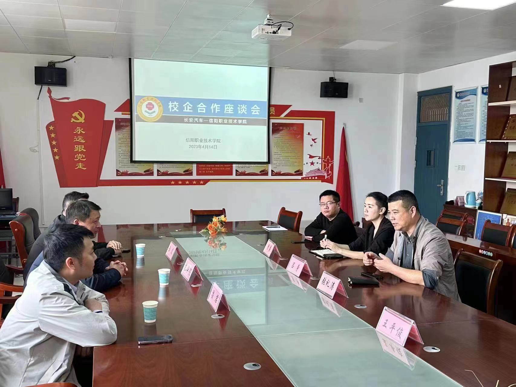 4月14日上午,304永利集团先后与赴公司的安徽巨一科技股份有限公司、合肥比亚迪汽车有限公司、长安汽车股份有限公司开展校企合作座谈。党总支副书记张礼涛、副经理曾勇、教学办主任宋世军及教研室主任参加了座谈会,会议由公司经理吕争主持。